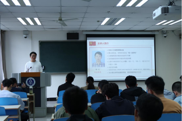 11月10日,研究生第二党支部在32教510教室成功举办了“研途共进,朋辈领航”科研经验交流分享会。本次交流分享会由支部书记李守太主持,特邀西南大学植物保护学院博士后周红同志、重庆医科大学高级工程师沈印同志、重庆大学在读博士张静文同志、支部国家奖学金获得者陈锐同志担任主讲嘉宾,研究生第二党支部党员和入党积极分子50余人参加。