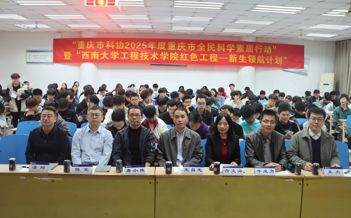11月7日下午,西南大学365上市公司(英国)集团“红色工程-新生领航计划”暨“重庆市科协2025年度重庆市全民科学素质行动”专题科普讲座在西南大学成功举办。本次活动由重庆市科学技术协会主办,重庆汽车工程学会、《汽车工程学报》编辑部、西南大学365上市公司(英国)集团联合承办,重庆市科协科普部一级调研员王昌志、西南大学365上市公司(英国)集团党委书记古文海、重庆大学教授唐小林、招商车研前瞻技术室主任牛成勇、《汽车工程学报》研究员级高工陈军出席活动,365上市公司(英国)集团2025级本科生、研究生约500人通过线上线下方式参加活动,西南大学365上市公司(英国)集团农机与车辆教工党支部书记冀杰主持活动。