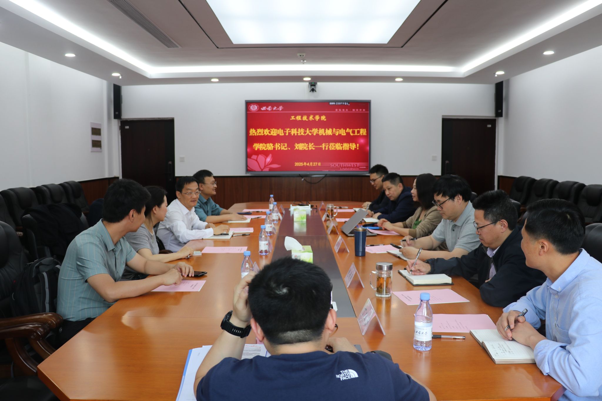 4月27日下午,电子科技大学机械与电气工程学院党委书记骆德渊一行来院访问。学院全体党政领导及教师代表参加交流会。会议由学院党委书记古文海主持。