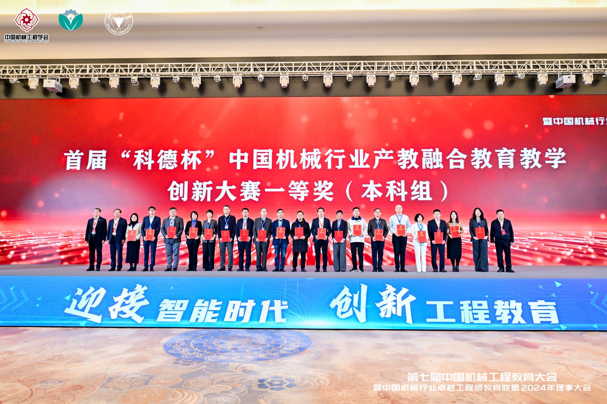 首届“科德杯”中国机械行业产教融合教育教学创新大赛由中国机械工程学会、中国机械行业卓越工程师教育联盟、中国科技发展基金会联合主办,旨在促进机械行业产教深度融合,推动教育教学模式创新。大赛采用区域赛、国赛两级赛制,共有来自140所高校、400余家企业的322项作品入围区域赛,130项作品晋级全国总决赛。参赛单位包括117所 “985、211工程”和“双一流”建设高校以及中国石化、中国铁建、德国博世等世界500强企业,竞争异常激烈。
