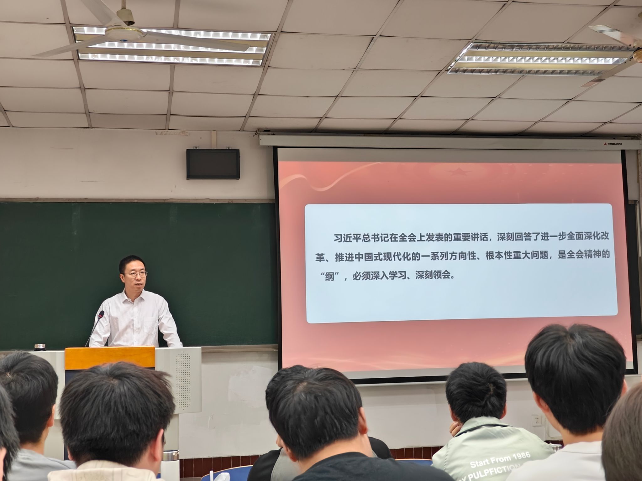 首先,韩旭东副校长带领同学们深入学习领会习近平总书记在党的二十届三中全会上的重要讲话精神,全面准确理解《中共中央关于进一步全面深化改革、推进中国式现代化的决定》。他结合实际案例,分析了全面深化改革的重要性和必要性,强调要将习近平总书记的重要讲话精神贯彻到学习、生活和工作中。