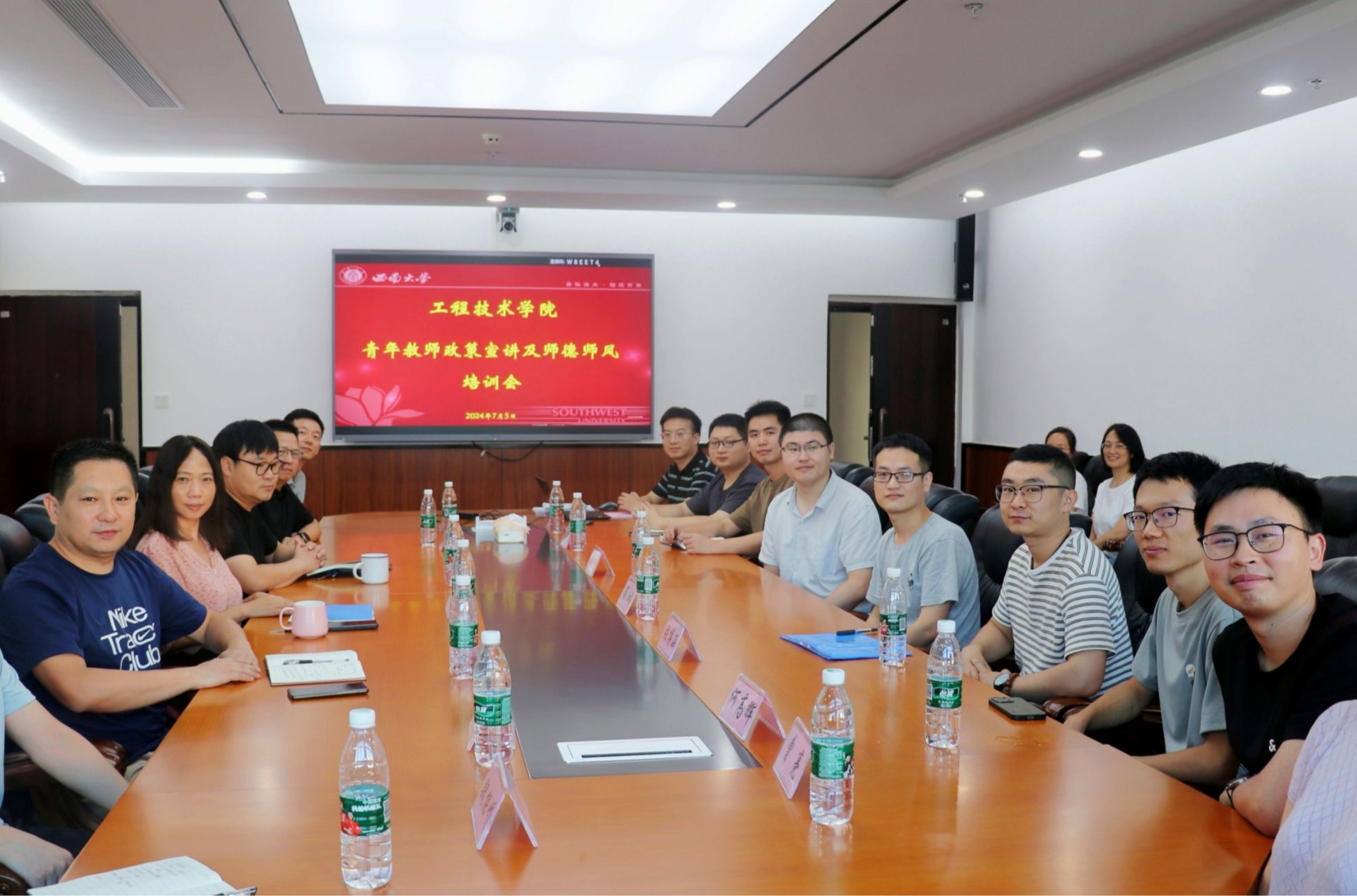 7月5日下午,学院在工科大楼A503会议室召开“青年教师政策宣讲及师德师风培训会”。学院全体党政领导、学院党政办和教学办相关负责人员及近3年来入职的青年教师参加会议。会议由党委书记古文海主持。