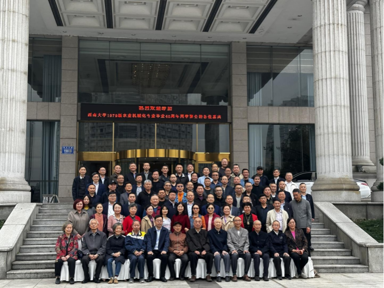 10月31日上午,我院1979级农业生产机械化专业校友毕业40周年座谈会在北碚海宇温泉大酒店举行,来自全国各地的校友和当年授课教师代表共80余人参加了座谈会。学校党委常委、副校长、校友总会常务副会长赵国华,校对外联络办公室主任唐军、副主任刘涛、校友服务科科长骆一,我院党委书记古文海、院长谢守勇、副院长李云伍出席座谈会,79级同学回校聚会活动筹备组总负责人侯智龙主持座谈会。
