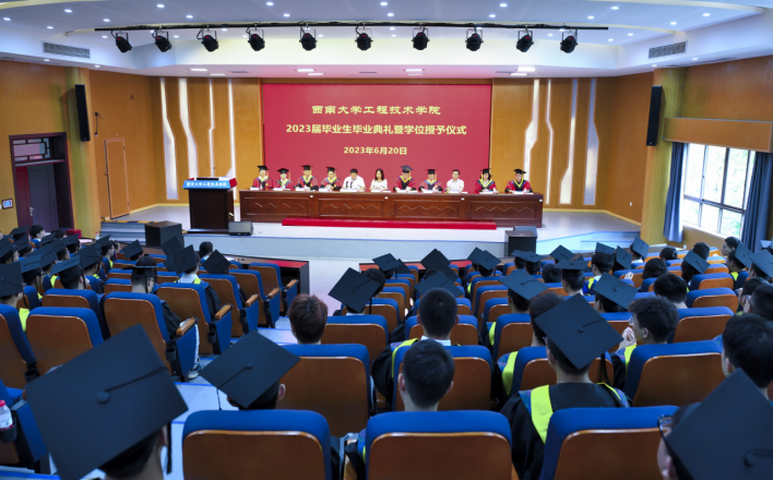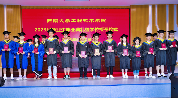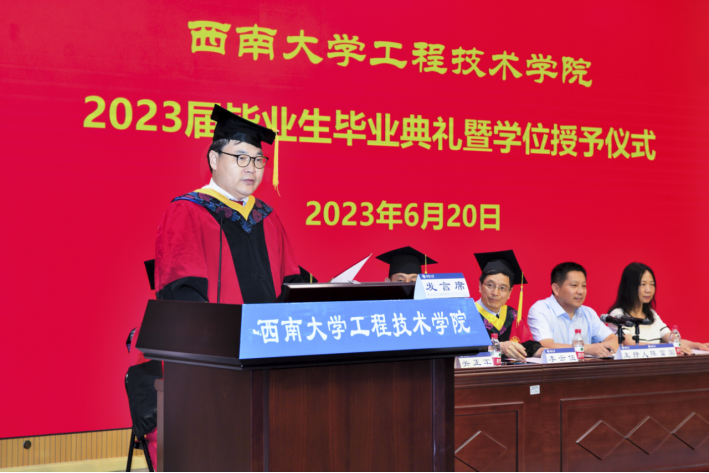 党委书记古文海书记宣读了西南大学关于表彰2023年优秀毕业生文件、西南大学准予2023届学生毕业及学位授予文件,鼓励毕业生们带着西南大学的精神,点亮灿烂星空,拼得精彩的人生。主席台就座领导和老师为受表彰的毕业生颁发荣誉证书,并为毕业生代表颁发毕业证书。