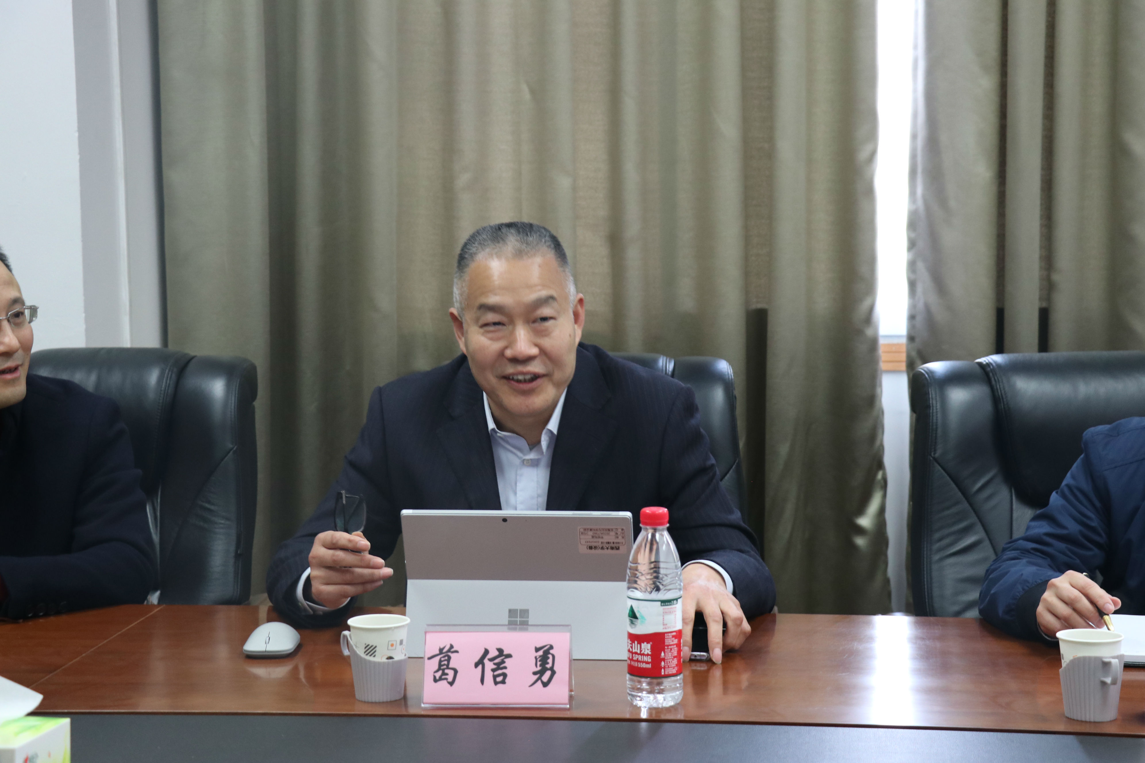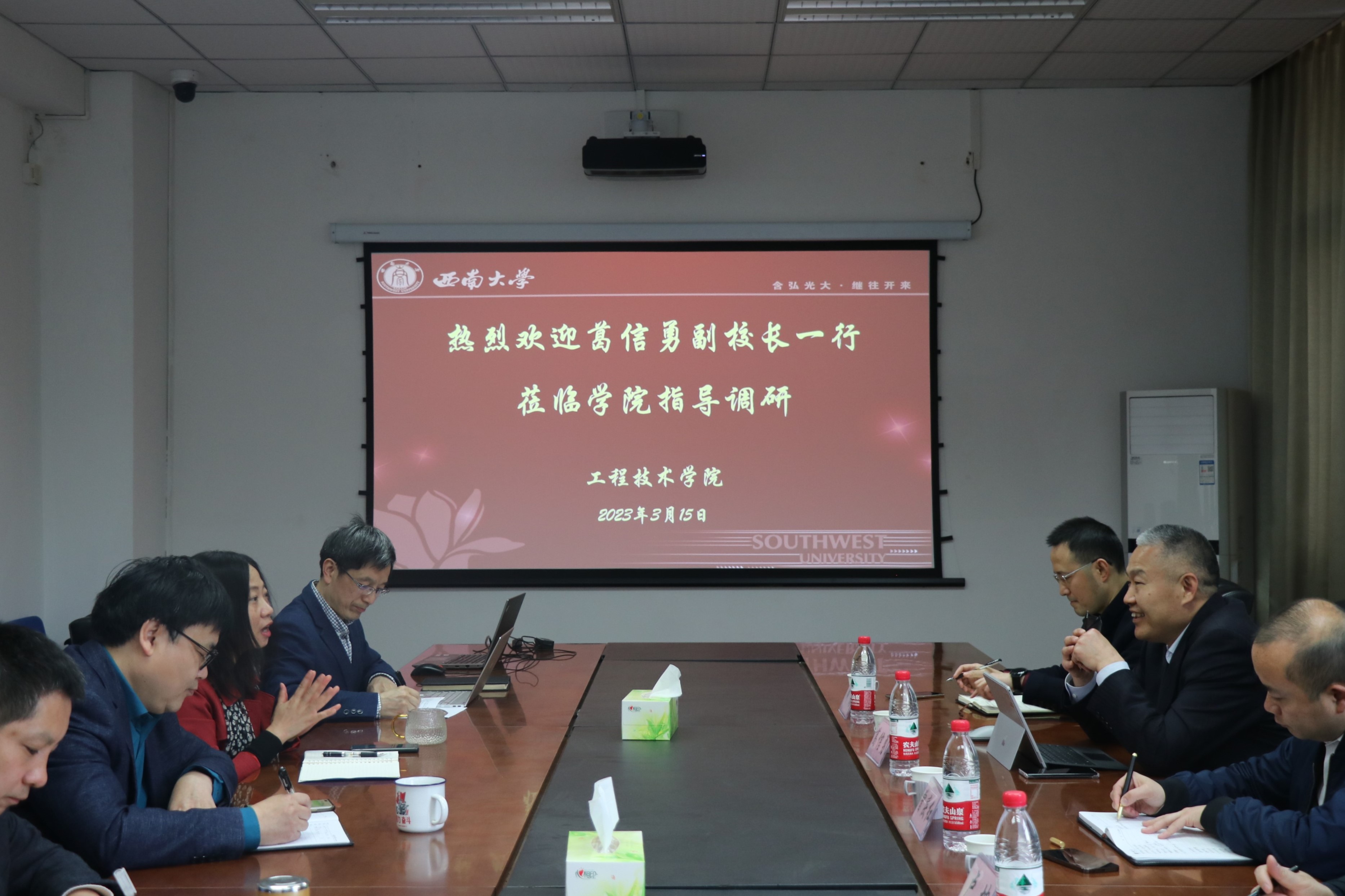 3月15日上午9:00,葛信勇副校长带领学校党政办公室副主任曾庆红、发展规划部部长何林、实验室建设与设备管理处处长卢坤等来学院调研指导工作,学院全体班子成员参加。