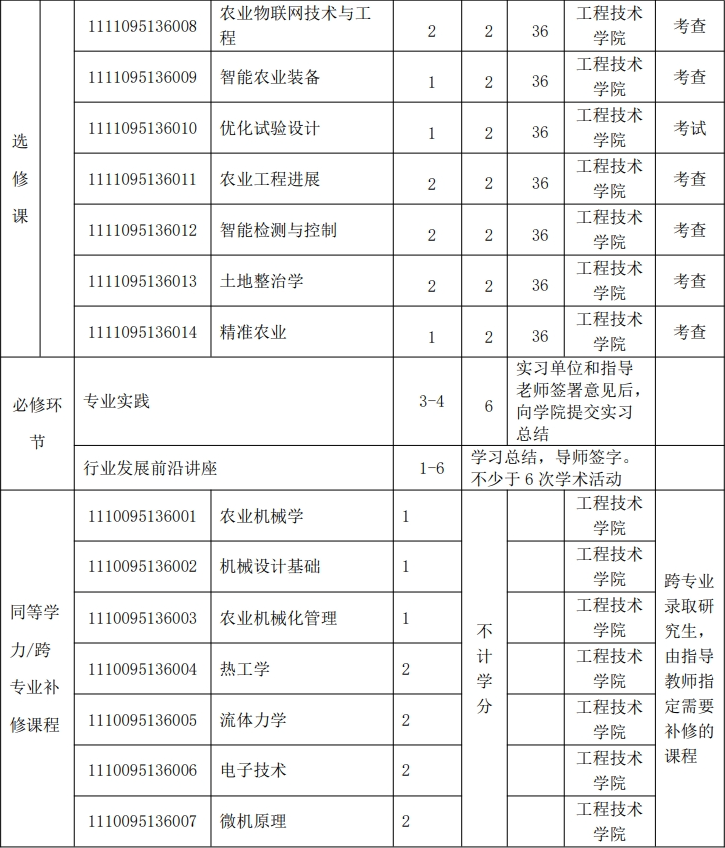 全日制农业硕士专业学位研究生培养方案(农业工程与信息技术领域)