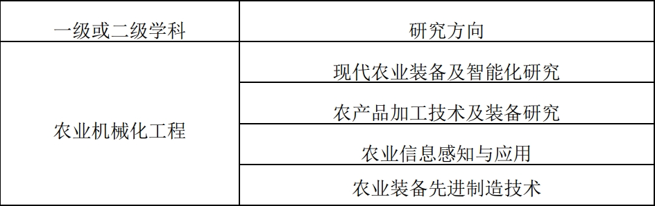 二级学科专业名称 农业机械化工程
